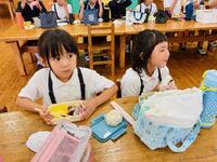メロンを配膳するときから、すでにワクワクの子供たち。給食当番もやる気満々!