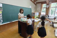 1年生は、入学後初めてのフッ化物洗口だったので、担任の先生からフッ化物洗口の目的ややり方などの説明をうけたあとに実施しました。