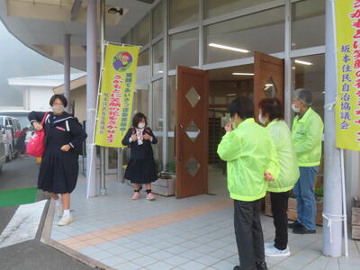 12月のあいさつ運動、最終日の今日は、5人の民生委員の方にも来ていただき、いっしょにあいさつ運動をしました。