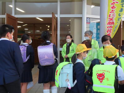登校してきた児童生徒は、いつもと違う人があいさつしているのに戸惑っていましたが・・・