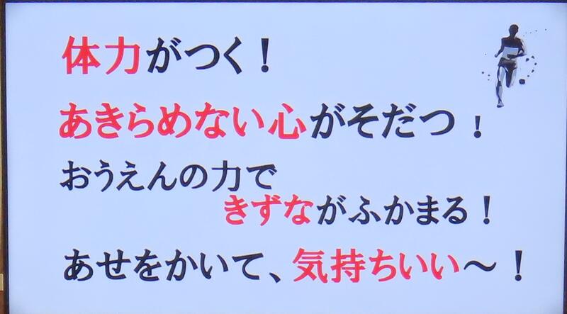 持久走に取り組むことのよさを4つ伝えて、みんなの気持ちをひとつにしてくれました。