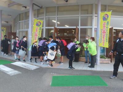 登校してきた児童生徒は、いつもと違う人があいさつしているのに戸惑っていましたが・・・