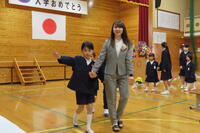 緊張した様子の1年生でしたが、6年生のお兄さんお姉さん達と手をつなぎ元気に入場しました。