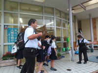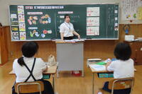 八代警察署から交通安全教育指導員の方を招き、交通教室を行いました。命を守るための教室です。1・2年生は道路の渡り方やバスの降り方、4・5・6年は自転車の乗り方などを教えてもらいました。あとは、実践あるのみです。