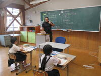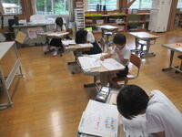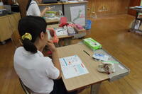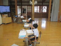 1・2年生は算数です。1年生は「8は2と6」「2と5は7」などのたし算を頑張りました。2年生は、たし算とひき算、そして確かめ算を頑張りました。