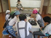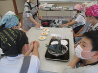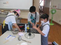 5・6年生の家庭科でゆで卵をつくりました。まず、ゆで時間を3分、5分、10分、15分と変えてゆでてみました。ゆで時間を変えると卵黄の感じが全然違います。子供たちは、自分が食べたいと思うゆで時間を決め、それぞれのゆで卵をつくりました。ちなみに私はゆで時間3分のゆで卵をいただきました。卵黄がトロッとしておいしかったです。