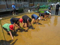 始めは、田んぼの中で足腰が安定せず、思ったように植えられない様子でしたが、少しずつ田んぼの中での動きに慣れてきました。