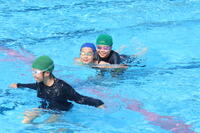 プール最後に日は、まず4年生以上で泳力調査を行いました。結果はなんと!4年生以上全員が25m以上泳ぐことができました。子供達と先生方の頑張りが実を結びました。