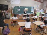 1・2年生は道徳でした。北里柴三郎のお話です。熊本の偉人で、1000円札になった人物なので、子供たちも知っているかなと思いましたが、まだ知らない子が多かったです。
