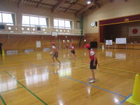 以前もお伝えしたように4・5・6年生は体育でタグラグビーをしています。今日は、体育館全面を使ってゲームをしました。ボールを持ったら前に進み、ボールを受ける子は後ろで準備します。ボールを持った子から、自然と斜めのラインができるようになりました。そして、それぞれ指示を出す声が出るようになってきました。軽快なステップでトライを決める子もおり、ラグビーらしくなってきたなと感心しました。