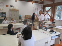 4年生は理科でした。砂の粒の大きさと、水のしみこみ具合の関係についての学習でした。砂の粒をしっかり観察していました。