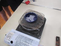 6年生の理科で、水溶液に溶けているものを調べる実験を行いました。水溶液に溶けているのは「食塩」「アンモニア」「塩酸」「石灰」です。それぞれの水溶液をスポイトで蒸発皿にうつし、コンロで熱していきます。徐々に水が蒸発していくところを子供たちは注意深く見守っていました。「食塩」と「石灰」は、皿に白い粉が残りました。
