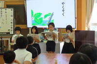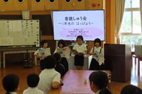 本日は、1年生の音読集会でした。国語の「やくそく」というお話を全員で音読しました。1年生は、ひらがなを学習し、カタカナを学習し終えたところです。「すらすら読めるかな?」と少し心配していましたが、上手にすらすら読めました。学習の成果を堂々と発表することができました。最後は、カタカナも読みました。「ポテトチップス」や「ジェットコースター」など、難しいカタカナもしっかり読めました。発表した1年生も、聞いている子供たちや先生も、みんな笑顔になった音読集会でした。