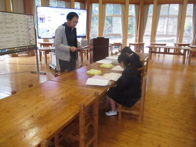 今日は、みんなで人権子ども集会の動画をみました。南関第二小学校の発表があり、学校にある3つの宝物の紹介がありました。「八竜小の宝物は?」の問いには「学習発表会で歌ったSmile Again」や「異学年とも仲がよいこと」など発表してくれました。