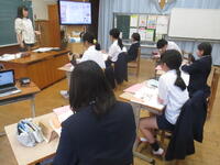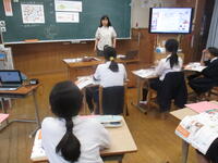 昨日の5・6年家庭科の授業風景です。ご飯とみそ汁を作るための事前学習です。先生が「出汁は何でとる?」と聞くと子供たちからは「かつお」「小魚」「昆布」と出てきました。ちゃんと知っているなと感じました。中には「パック」「かに」と答える子もおり、生活の場面を思い出しながら答えていました。