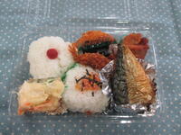 道の駅坂本「さかもと館」の「おにぎり弁当」と、デザートにさかもと復興商店街「本田商店」のバナナです。どちらもとてもおいしかったです。
