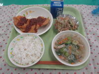 こぎつねご飯、牛乳、魚そうめん汁、がね揚げ です。