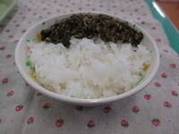 今日のご飯は、26日火曜日稲刈り体験の日に、「日光棚田活性会」の皆様からいただいた新米です。「日本棚田百選」の一つにも選ばれている日光の棚田で作られているお米。田植えから稲刈り、脱穀まで全て手作業のお米です。きれいな沢の水で美味しく育ち、今年は豊作だとおっしゃっていました。そのおいしさ、手作りふりかけで何杯もおかわりしたくなるおいしさです。