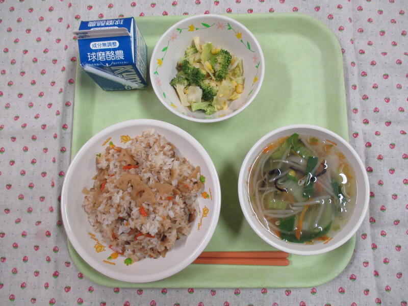 今日は、文字通り、中華でした。中華まぜごはんに、中華スープで、中華料理の味を堪能しました。特に中華まぜごはんは、具だくさんに、香ばしくごはんが進みました。今日もおいしくいただきました。