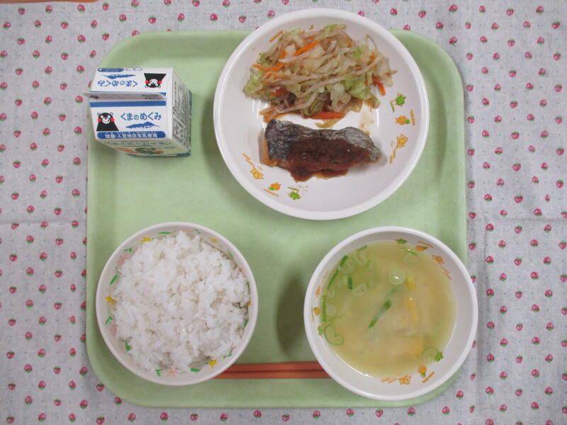 今日の献立は、麦ごはん、牛乳、魚の塩こうじ焼き、みそ汁、ひじきの炒り煮でした。