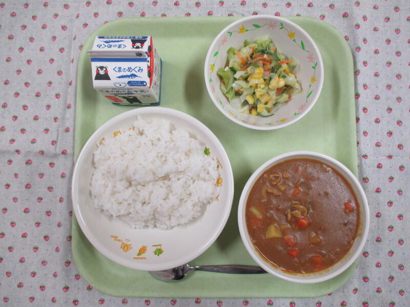 今日は、みんなが大好きなカレーでした。今日のカレーは、ポークで、あっという間に食べてしまいました。それからコールスローサラダもキャベツのシャキシャキ感があり、ぺろりと平らげました。今日もおいしくいただきました。