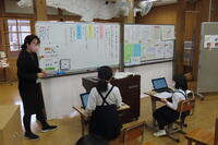 2月1日に講師の先生を招いて、1・2年生の国語科の研究授業がありました。1年生は、「たぬきの糸車」で、2年生は、「ようすをあらわすことば」の学習でした。