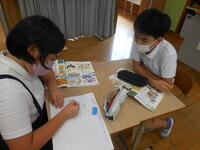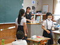 何をしているのか聞くと、「図工の学習で、風のとおり道を調べていました!」とのこと。