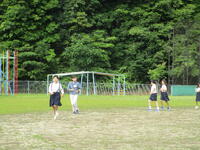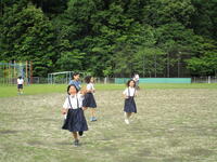 学校にバスが到着し、検温した順にランドセルを置いて、どんどん運動場へ走りに出てきます。