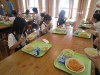 縦割り班ごとに机をかこみ、みんなで仲良くいただきました♪