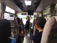バスガイドさんの巧みな話術で、楽しく賑やかにバスの中をすごしてます!