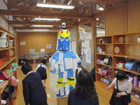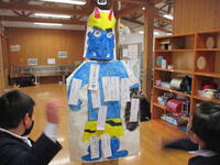 また、給食の先生方が、給食ボードの飾り付けを「2月バージョン」にしてくれています。「なんで魚なんですか?」と興味津々の子もいて、日本の伝統行事を説明することもできました。