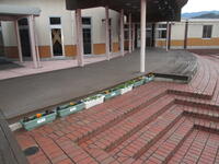 玄関や中庭ステージのプランターには、パンジーやビオラなどの花が咲きほこっています。