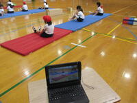 今日は、1・2年生の「マット運動遊び」を体育館に見に行くと、そこにはタブレットがありました。