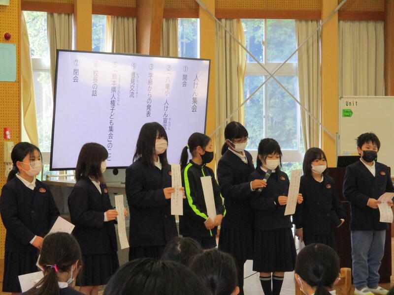 「一人一人が人権宣言を守って八竜小から悪口がなくなるといいと思いました」