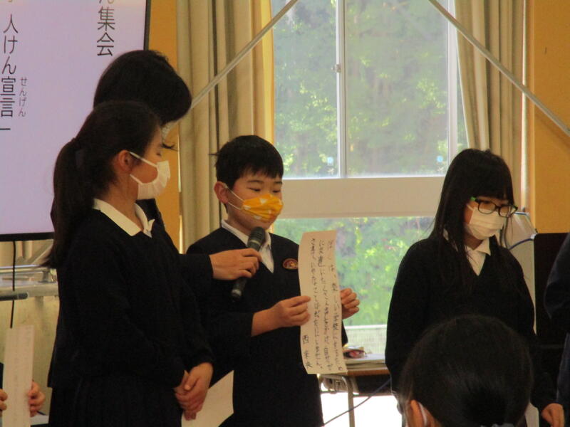 次に、児童一人一人の人権宣言文を発表しました。一部を紹介します。