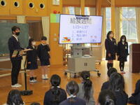 24日(火)の発表集会で、給食委員会の発表がありました。給食週間の取組のひとつとして、発表してくれました。