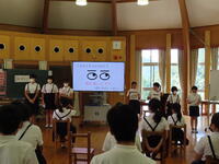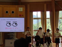 目を大切にするために、テレビやタブレットをどのような姿勢で見ればよいか、みんなに問題を出して発表してくれました。