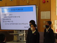 2月8日(木)、5・6年生を対象に薬物乱用防止教室を行いました。今年度は、八代警察署の生活安全課の方が講話をしてくださいました。薬物の種類や危険性、薬物の依存性や耐性の話、ゲートウェイドラッグやオーバードーズのことなど、様々なことを教えていただきました。