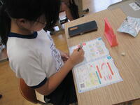 動画を見ながら、むし歯や歯肉炎の原因を考えたり、ハブラシやデンタルフロスを使用して実習をしたり、盛りだくさんな内容でしたが、ドリルを活用し、友達と意見交換しながら活動を行っていきました。