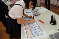 実験をした後は、拡大図に結果を書き込み、それぞれ考察を考え、グループで考えを出し合いました。みんな、自分の考えをしっかり友達に伝えていました。