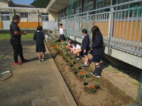 花や野菜の苗を購入し、花壇に植えました。5・6年生はマリーゴールド、サルビア、すいか、とうもろこし、ミニトマトなどを植えました。大きな実がなるといいですね。