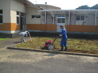 今日は、田んぼとなる学校園を地域の方に耕していただきました。