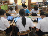 子供たちは、タブレットを使って、1つのワークシートを完成させていきます。役割分担をし、友達と相談しながらワークシートを完成させていきます。温かな雰囲気で友達同士で関わっていく姿は素敵でした。「誰一人取り残さない」学びの形の1つだなと思いました。