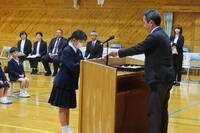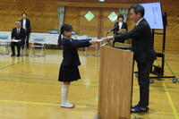 今日は、1~5年生の修了式を行いました。代表に修了証を渡しました。