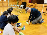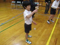1・2年生の生活科で昔遊びをしました。地域の方を招いて、地域の方と一緒に遊びました。お手玉、けん玉、ゴム跳び、紙飛行機、つきでっぽうをしました。初めて遊ぶものばかりで、子供たちにとっては新鮮な体験でした。私も久しぶりにけん玉をしてみました。子供といっしょで、成功するとうれしいものです。デジタルの世の中でアナログの楽しさを再発見できました。