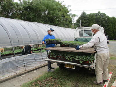 本年度最後の花づくり委員会の活動日でした。小雨が降り続く中、ハウス内での種まき作業と花壇の葉ボタンを抜く作業が同時進行で行われました。もう、この時期から夏の準備が始まるのですね。多くの方々の手で、花いっぱいの美しい景観を保ち続けていることの素晴らしさを感じます。