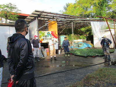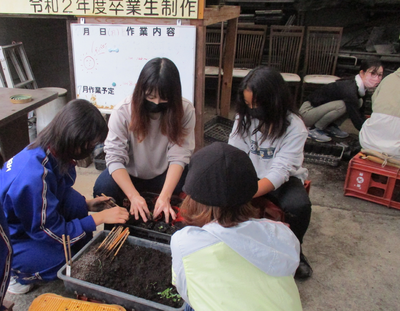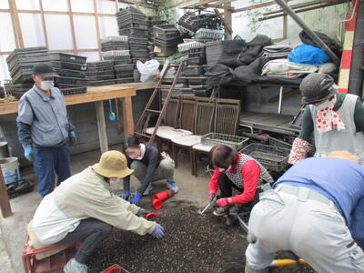 今月から各学年の保護者の皆様にも参加していただき、花づくり作業を行います。