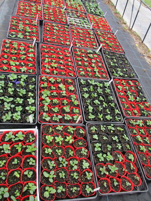 八嘉花づくり委員会の活動日。今日は学習センターのハウスで、パンジー苗のポットあげ作業でした。種まきをしてひと月ほどたつと、葉が4、5枚程度に生長します。一つひとつ手作業でポットに植え替えていきました。先日、3年生たちが種まきをしたパンジーの種から、かわいい芽がでていました。みんなでポットあげの体験をさせていただく予定です。楽しみですね。