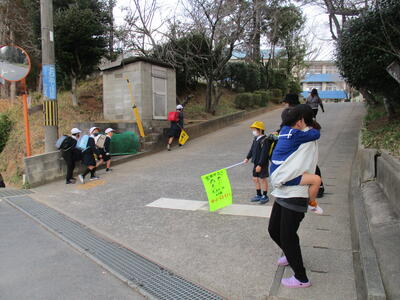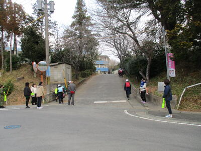 1年生の保護者の皆さまに校区内各所であいさつ運動をしていただきました。少しずつ寒さが和らいできた朝、多くの保護者の皆さまにご協力いただき、ありがとうございました。