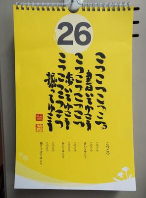 校長室には、詩人・坂村真民さんの日めくりカレンダーを掛けています。本日26日の言葉は「こつこつ」です。